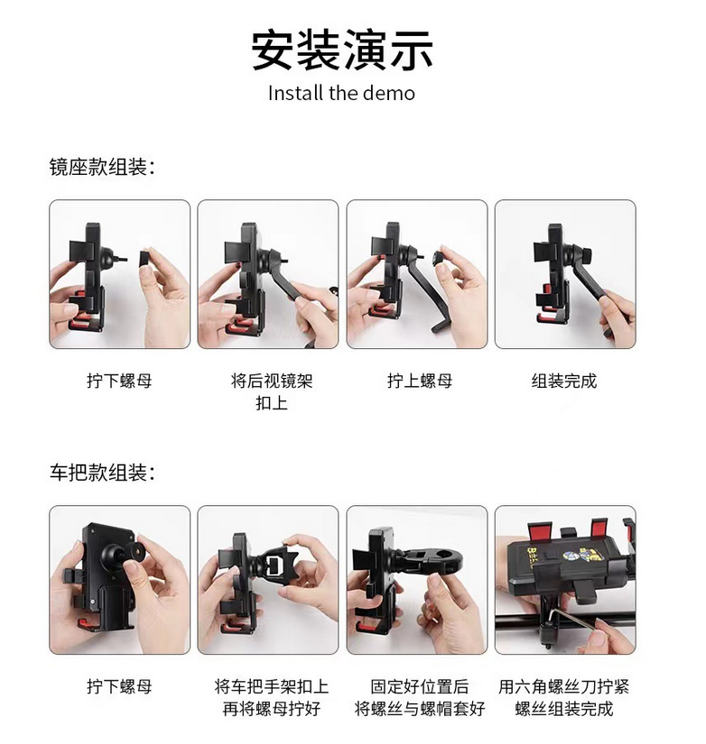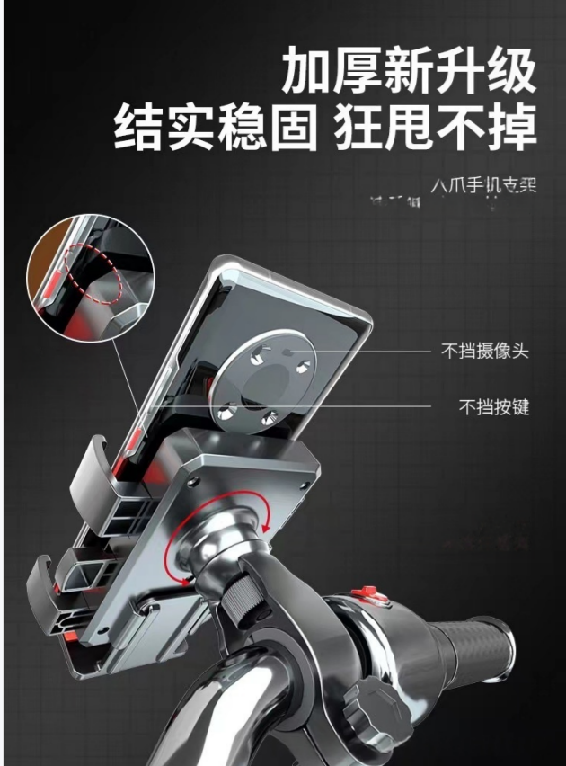 Electric Bike Phone Holder - Vibration Proof Motorcycle Bicycle Mount for Food Delivery Riders Navigation