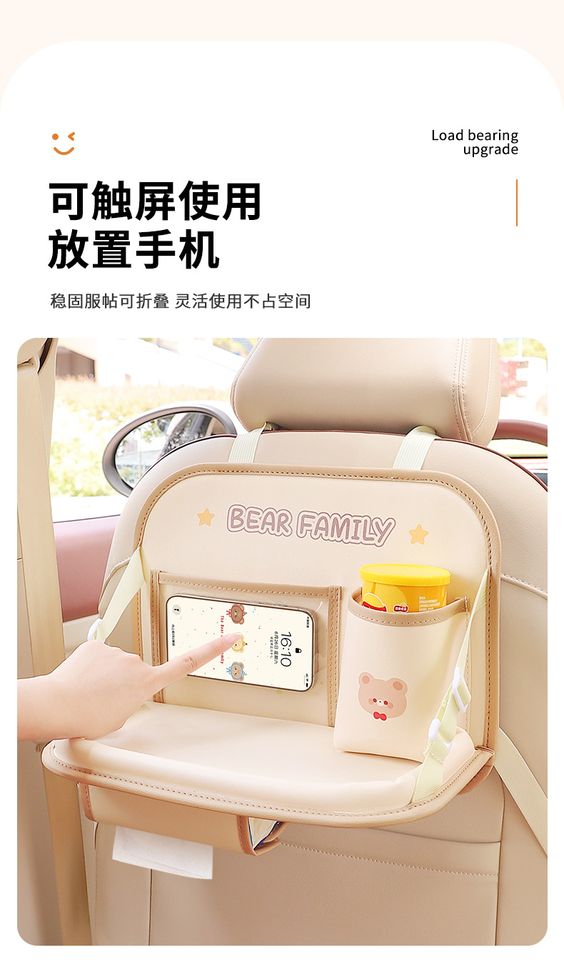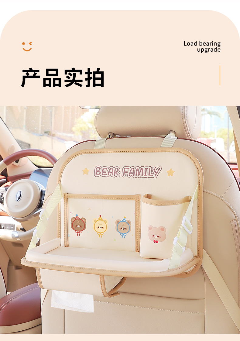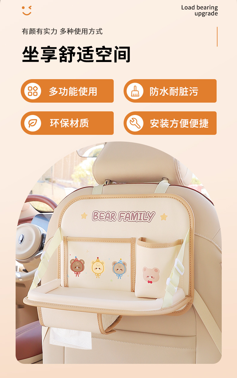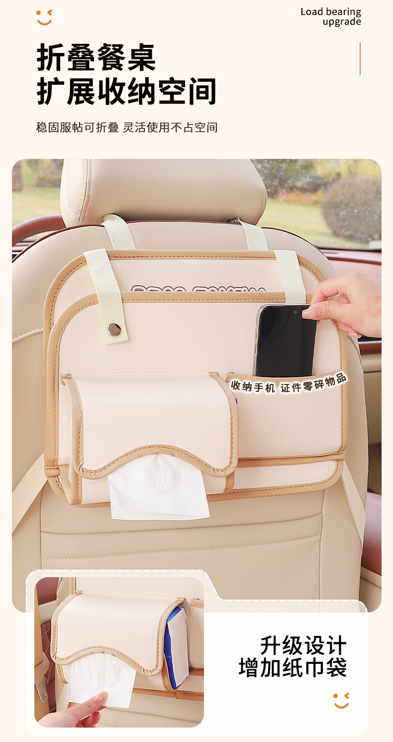 产品用途:汽车椅背收纳袋.水杯架.手机袋.杂物盒等多样化收纳!